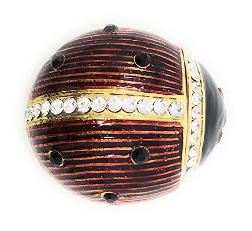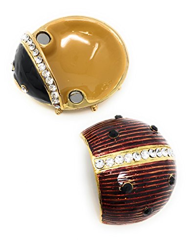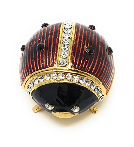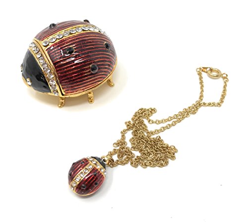 Enameled Ladybug Trinket Box & Neklace by Kubla Craft, Accented with Austrian Crystals, 1.75L