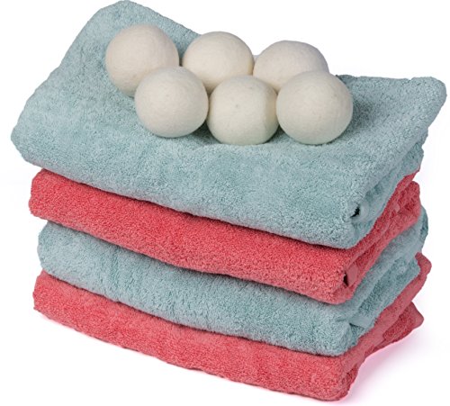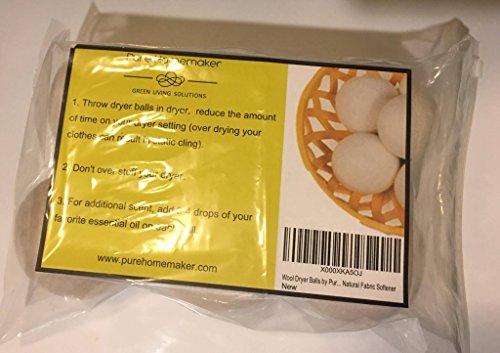 Wool Dryer Balls by Pure Homemaker, 6 Pack XL Organic Wool, Non-Toxic, Reusable, X-tra Large. Reduces Drying Time and Chemical Free. Natural Fabric Softener