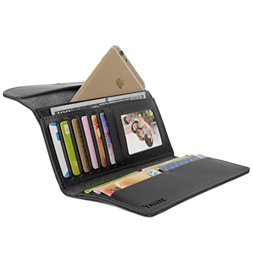 -. Binding : Apparel -. Brand : YALUXE -. Department : womens -. Feature : Cow Split Leather with Coating Finish. Compact yet thin, perfectly fit in your purse. / Clear layout and trifold design is made for you to keep your things oraganized well. / 13 card slots for ID / credit cards ,including 1 photo slots, and 3 bill compartments. Fit up to iPhone 6s. / This Wallet Croco Pattern comes in a gift box and it is already ready to be a great gift for your family and friends. / Dimensions: 10.23" L x 7.48" W x 0.98" H. The Weight is 0.29 pounds. -. ProductGroup : Apparel -. ProductTypeName : ACCESSORY -. Size : Large -. Title : YALUXE Women's Multi Credit Card Organizer Leather Thin Wallet Checkbook Holder Holder