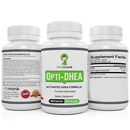 DHEA is a naturally occurring precursor hormone that can convert into both testosterone or estrogen depending on the body's need. VitaMonk's Opti-DHEATM provides one of the highest quality DHEA supplements available for both men and women. Micronized and Activated With Black Pepper Extract Our DHEA is micronized and specially formulated with Black Pepper Extract to activate the DHEA and increase absorption. All this means you'll get one of the highest effective doses out of every capsule! Micronized DHEA means that with our DHEA supplement you get smaller particles which provide greater surface area for absorption of the DHEA hormone per capsule. We made sure that with Opti-DHEATM you get the most out of every micronized DHEA 100 mg capsule. You'll get a more effective supplement for fast-acting results . The Highest Quality DHEA Supplement Without question, this is one of the best DHEA 100 mg supplements available on the market. When you use our OptiDHEATM, you know that it is: - Formulated by licensed doctors