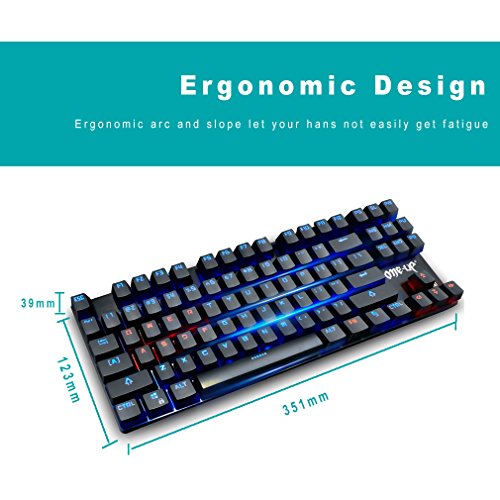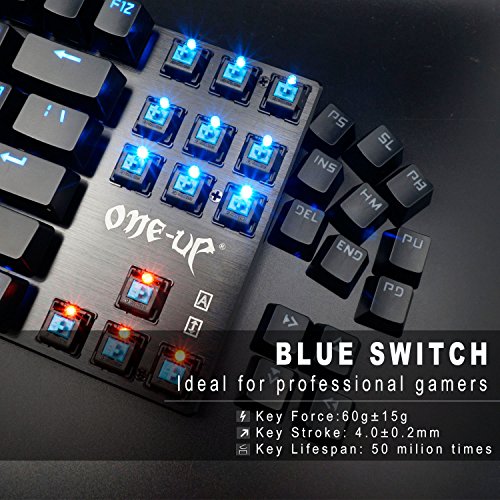 【Mechanical Blue Switches】The real mechanical keyboard designed for gaming which can improve your gaming performance by giving you speed and responsiveness like never before. 50 million times keystroke test, 60+/-15 grams keystroke force and 4.0+/-0.2mm keystroke travel, perfect for professional gamers and typists