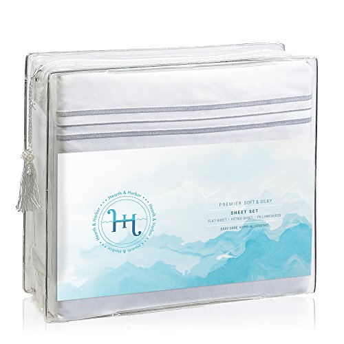 Hearth & Harbor Soft Luxury Best Quality Double Brushed Microfiber Fitted Bed Sheets, Queen, White, 4 Piece