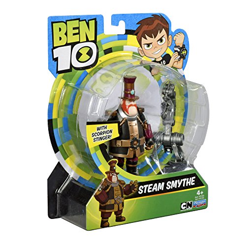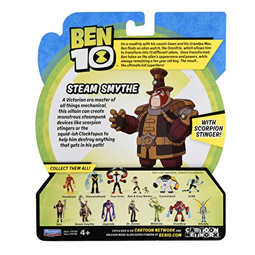 On a road trip with his cousin Gwen and his Grandpa Max, Ben finds an alien watch, the Omnitrix, which allows him to transform into 10 different aliens. Once transformed, Ben takes on the alien's appearance and powers, while always remaining a ten year old boy. The result.the ultimate kid superhero! Ranging in height from 4" to 5" tall, each figure in the assortment is highly detailed and articulated. Most figures also comes equipped with themed accessories for added play! This pack includes Steam Smythe. A Victorian era master of all things mechanical, this villain can create monstrous steampunk devices like scorpion stingers or the squid-is Clock opus to help him destroy anything that gets in his path!.