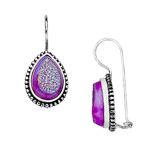 -. Title : Sajen Pink Druzy Drop Earrings in Sterling Silver