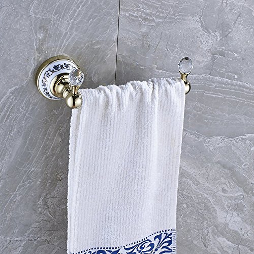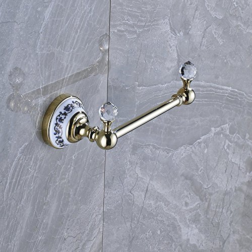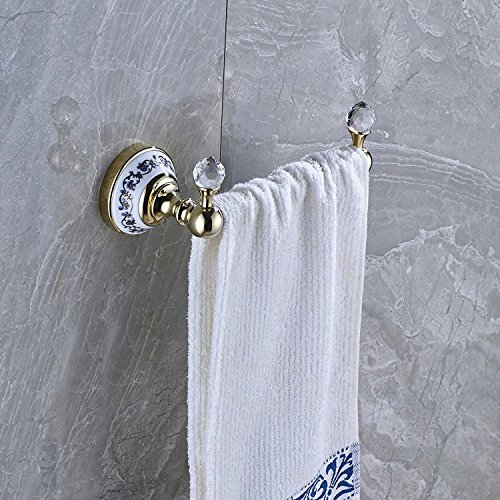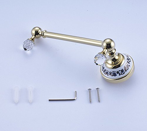 Rozin Wall Mounted Crystal Deco Bath Towel Bar Clothes Towel Hook (Gold)