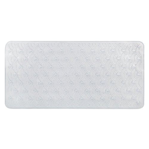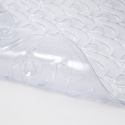 - LUXURIOUS DESIGN – The delicate design of scallops brings a creative flair to your bath and spa. Enjoy the comfort of this clean, clear and durable mat. The bubbly scalloped texture brings a safer environment. Rejuvenate in the comfort of added non-slip security. The suction cup on the bottom keeps the mat in a stable position.