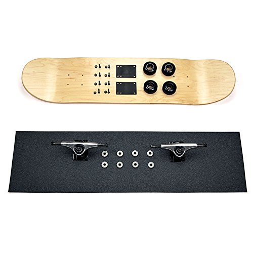 -. Feature : 7 Ply Maple Red Deck - with Black Grip Tape / Two Tone Black Trucks (Trucks may be upgraded if colors vary) / Metal Polish Abec 7 bearings / Black 54mm Wheels / Choice on you for assembling