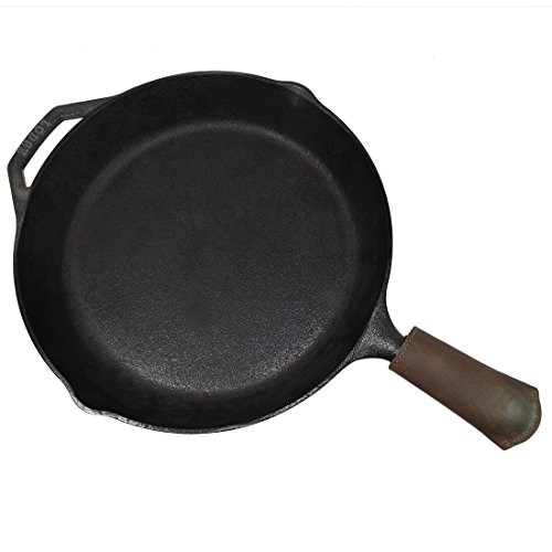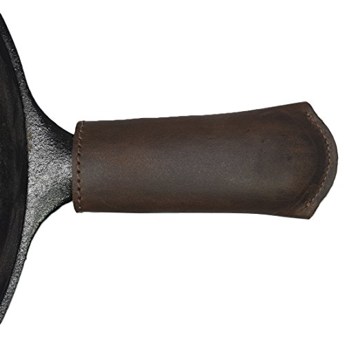 - HANDMADE LEATHER HANDLE HOLDER LINED WITH SOFT SHEEPSKIN FOR EASY INSERTION AND REMOVAL: An indispensable tool for the kitchen, adding some class and style to your Skillet pan while preventing any nasty burns.