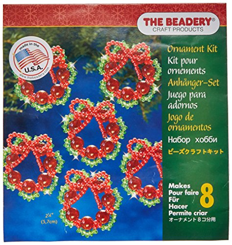 Beadery Holiday Beaded Ornament Kit, 2.25-Inch, Cranberry Wreath, Makes 8 Ornaments