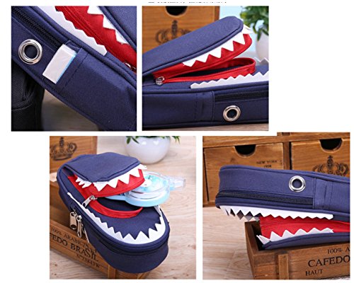 Big Capacity Pencil Pen Case Multi-compartment Pencils Holder Pen Pouch Novelty 3D Shark Pen Organizer Protable Office Stationery Box Storage Bag with a Combination Lock for School Students Boys Girls