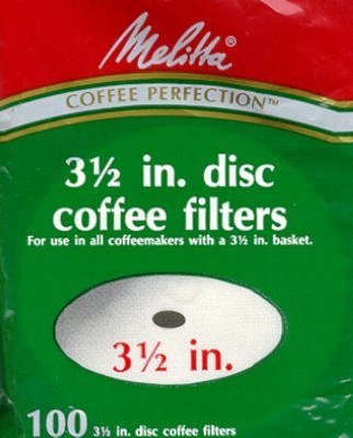 Binding : Kitchen Product Description Melitta 628354 White 3.5" Disc Coffee Filters, 2400 Count, 24 x 100 Packs. Made from the same high quality paper as our basket and cone filters, these filters help reduce the amount of oils and sediment that seep into your coffee. Less oil means better tasting smooth coffee. These discs are designed to lay flat on the bottom of your percolator basket. Chlorine free. Fits all percolators. 0