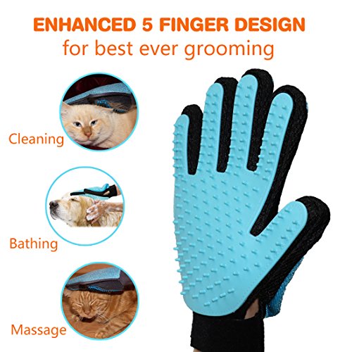 PETS LOVE BETTER DESIGN! - Enhanced five finger design allows you to groom hard-to-reach places like face or tail. Bathe the pets with this glove, which will clean the pet hair easily and with rubber tips provide gentle relaxing massage. Petting is better than pet chasing!