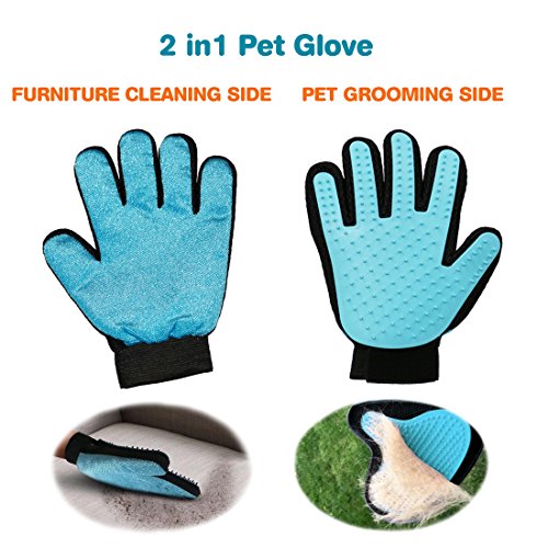 Idepet 2-in-1 Pet Dog Grooming Glove,Deshedding Brush and Furniture Pet Hair Remover Mitt For Cat & Dog Gentle Massage Tool Enhanced Five Finger Design Gloves with Soft Rubber Tips