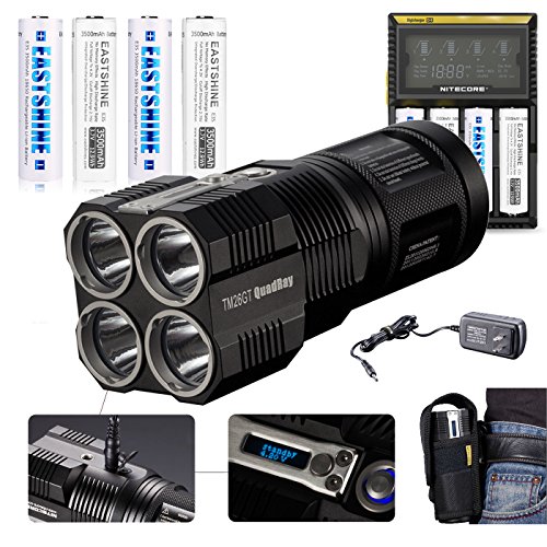 BUNDLE: NITECORE TM26GT 3500 LUMENS 124000CD 4*CREE XP-L HI V3 LED FLASHLIGHT BY 4PCS 3500MAH EASTSHINE E35 18650 BATTERIES D4 CHARGER WALL/CAR ADAPTER EB182 BATTERY CASES