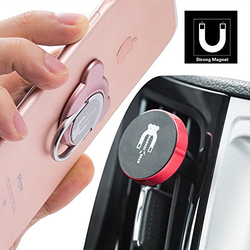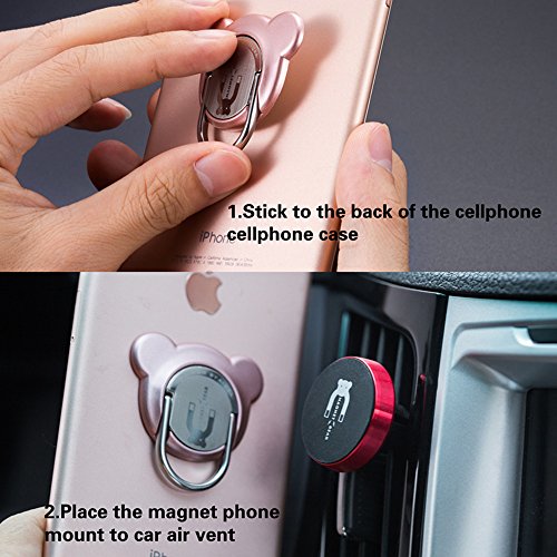 - 4.PACKAGE CONTENTS:1 Pcs Magnetic Phone Car Mount + 1 Pcs Bear Phone Ring Holder + 1 Pcs UltraSlim Metallic Discs,Car Mount Mada of Rubidium magnet +Aluminium+Silicone ,Phone Ring Made of PC+Zinc Alloy.