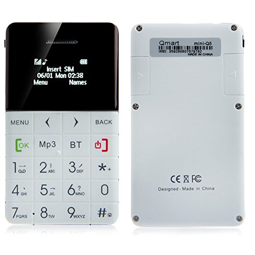-. Feature : ✓ New Ultra Phone for seniors thin Qmart Q5 card mobile phone mini pocket students personality children phone, the most thin card phone in the world / ✓ Working Networks: GSM 850/900/1800/1900MHZ(Please make sure your sim card can work on one of the four networks before you buy this phone) / ✓ Standard Micro USB charging interface compatible with the charger on the market / ✓ Support bluetooth function, GPRS Location, Sedentary remind, Remote picture, Intelligent anti-lost, FM Radio. / ✓ Thinner than your finger, good feeling for touching, luxury material, everything is perfect.