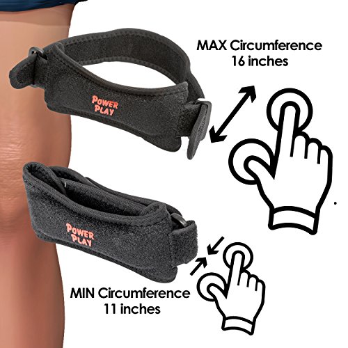 Power Play Patella Knee Strap – Tendon Brace Support for Pain Relief, Jumpers Knee or Patellar Tendonitis. Great for Athletics, Running, Hiking, Soccer, Basketball, Volleyball and Stairs Climbing