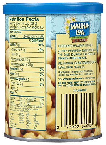Mauna Loa Roasted Unsalted Macadamia Nuts Can, 4.5 oz, 2 pk