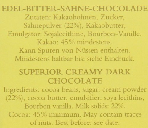 -. Feature : 100g Premiumtafel Edel-Bitter-Sahne mit 45% Kakaoanteil in attraktiver Verpackung (5x100gTafeln) / 5x100g Premiumtafel Edel-Bitter-Sahne / mit 45% Kakaoanteil / zum Verschenken oder Selbergenießen