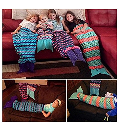Title : Bgoodgirl Wool Knitted Mermaid Tail Blanket Handmade Mermaid Blanket (80180cm, Iridescent)