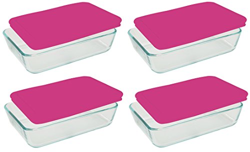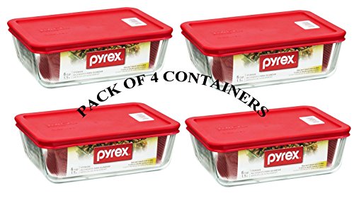 PYREX Containers Simply Store 6-cup Rectangular Glass Food Storage Red Plastic Covers ... (Pack of 4 Containers)
