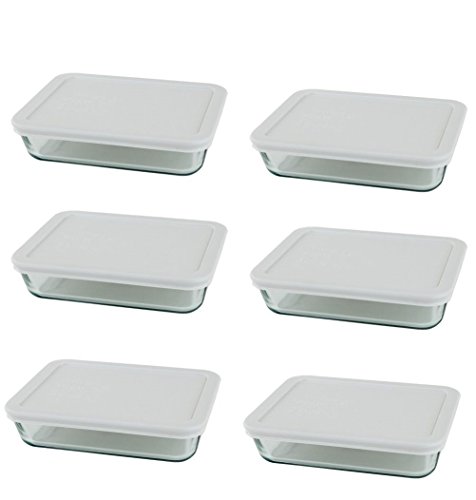 Pyrex 3-cup Rectangle Glass Food Storage Sets (3 cup Containers (Pack of 6), White Lid)