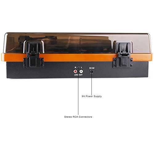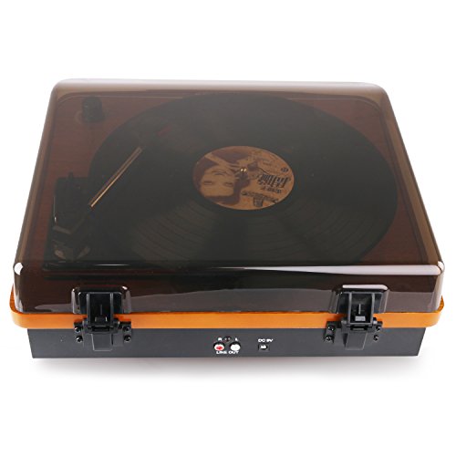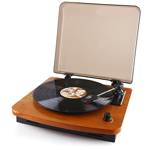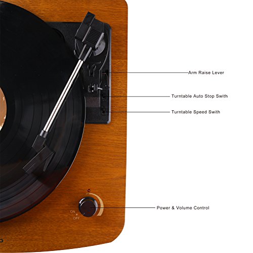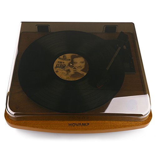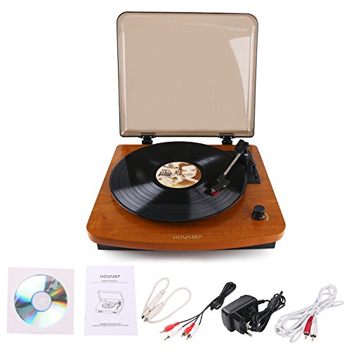 HOVAMP 3-Speed Turntable with Built-in Stereo Speakers RCA Output, Vintage Style Record Player - Oak