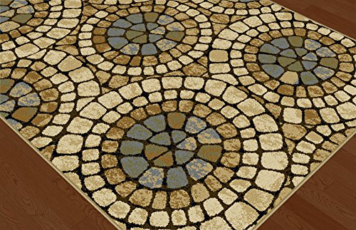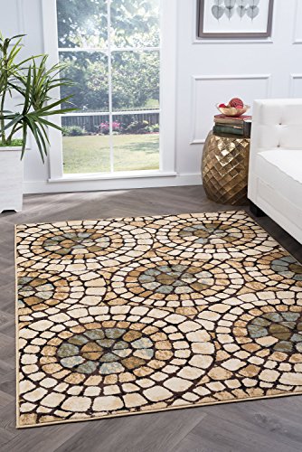 This transitional design is an exquisite mosaic with a Mediterranean flair. A timeless classic that will bring a casual look with designer style. In shades of blue, beige, gold and ivory. This area rug is available in several individual sizes and as a three piece set so you can harmonize your theme throughout your home. It is easy to care for, vacuum regularly to maintain its appearance. Spot clean as needed with mild detergent, do not dry clean or bleach.Feature