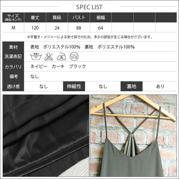 実寸:着丈 120cm 肩紐 24cm バスト 88cm 裾幅 64cm