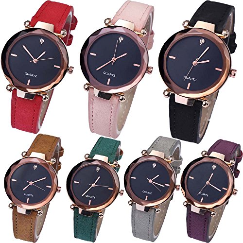 - -Package included: 7pcs leather watches in Purple,red,black,dark green,brown,pink,silver to fix your everyday fix