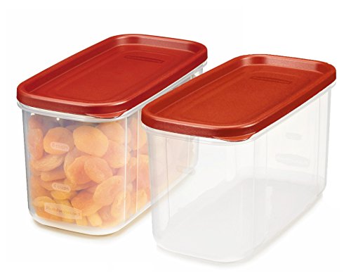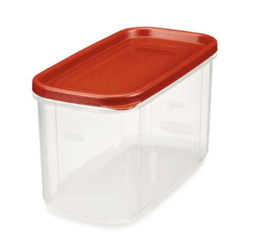The Rubbermaid FG7M7200CHILI 10-Cup Dry Food Container is part of the Space Efficient Dry Food Storage system. The containers stack smartly, side by side, saving valuable space in your pantry. The slim rectangular designs allow for more storage in less space and the clear containers allow you to easily identify the contents. The 10-Cup container is ideal for storing things like Rice and Dried Fruit.