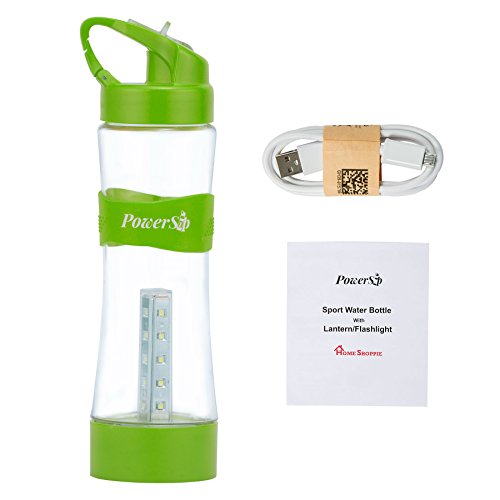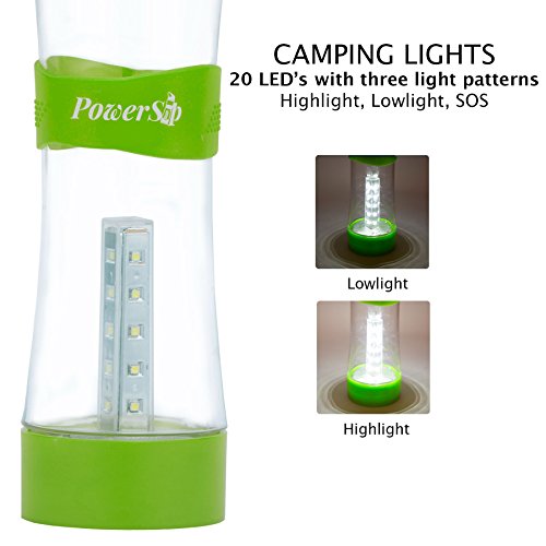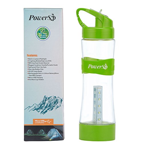 PowerSip Sport Water Bottle with Built-in LED Lantern / Flashlight - BPA Free - Three Light Levels with USB Rechargeable Battery and Portable Carabiner Hook