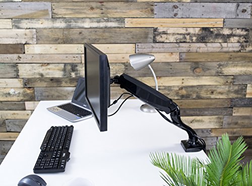 Single Monitor Desk Mount Stand and Laptop Tray Holder w/ Deluxe Gas Spring / Holds 1 Screen up to 27" or Laptops/Noteboks 10" to 15" (STAND-V001BL)