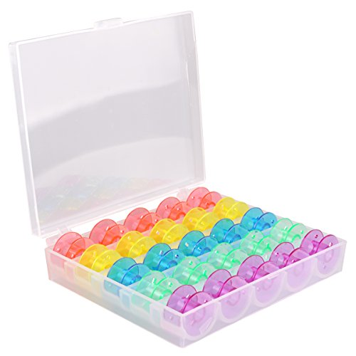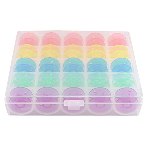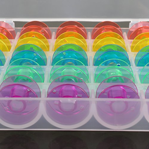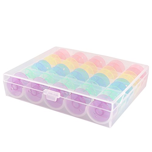 eZAKKA Plastic Sewing Machine Bobbins with Storage Case for Brother Janome Singer Elna Sewing Machine,Multicolor,25/Box