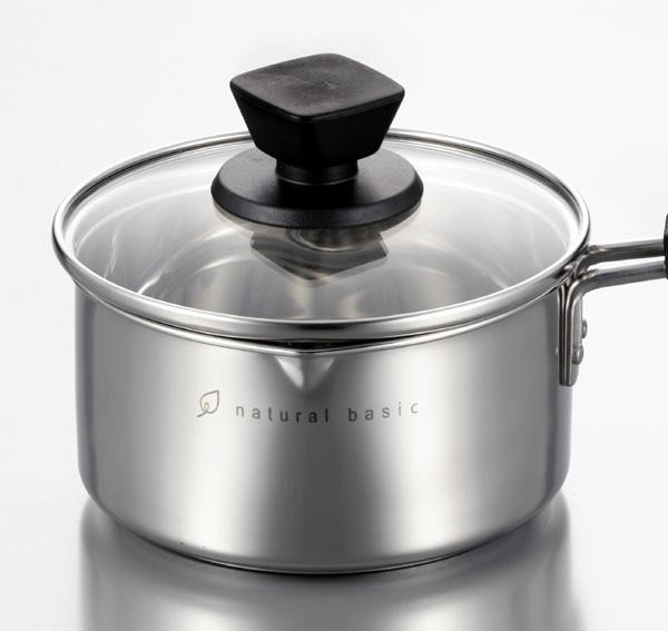 | 素材・材質 | 本体/18-8ステンレス(底厚0.5mm) 底部(底厚合計4.0mm)/アルミニウム(板厚3.0mm)、18-0ステンレス鋼(板厚0.5mm) 蓋/強化ガラス 取っ手・つまみ/フェノール樹脂 |
