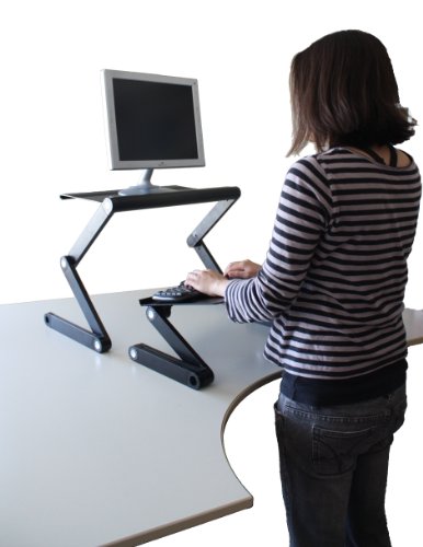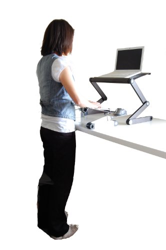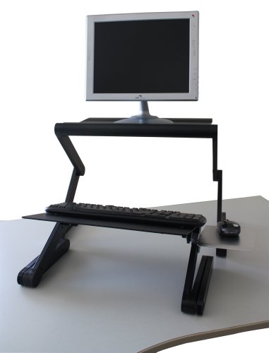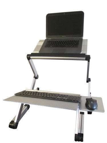 -. Feature : LAPTOP/MONITOR STAND: Aluminum Panel Tilts & Adjusts from 0-2' / KEYBOARD TRAY: Adjust Panel Angle & Height (~0-1.5') / MOUSE PAD: works on right & left side, removable, adjustable **NEW Larger Size** / Convert any table or desk to a healthy sit/stand desk / Works with LAPTOPS & DESKTOPS under 13lbs