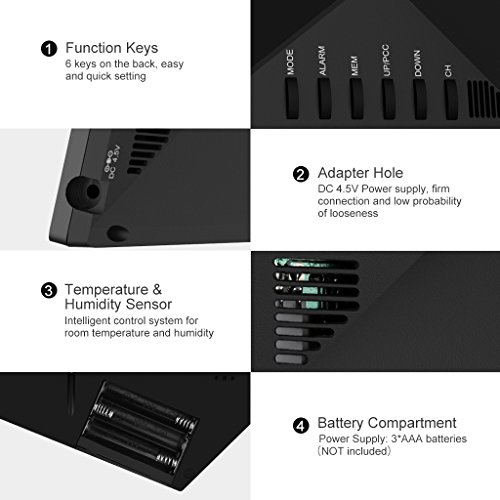 - ALL-IN-ONE FEATURE: Easily retrieve information on date, time, air pressure, moon phase, in&out temperature, in&out humidity, weather forecast icon and etc; additional daily alarm and snooze function supported