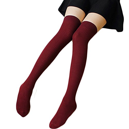 -. Feature : 1.Material: Material: combed cotton 80%, spandex 18%, rubber band 2% / 2.Size: Free Size, Height 155CM-170CM;Length: feet 22CM + socks 55CM / 3.Characteristics: sock with vertical tripe makes your leg thinner in visual effect and the edge of socks is reinforced in case that sock falls out / 4.Occasions: Socks is good for school, daily life and other outdoor activities; it is also a lovely gift for your friend; fit for sP.R.Ing, fall and winter; / 5.The edge of socks will be a little tighter than other part of socks because of stopping socks falling down; please care about it