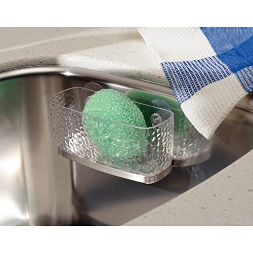InterDesign Rain Kitchen Sink Suction Holder for Sponges, Scrubbers, Soap - Clear