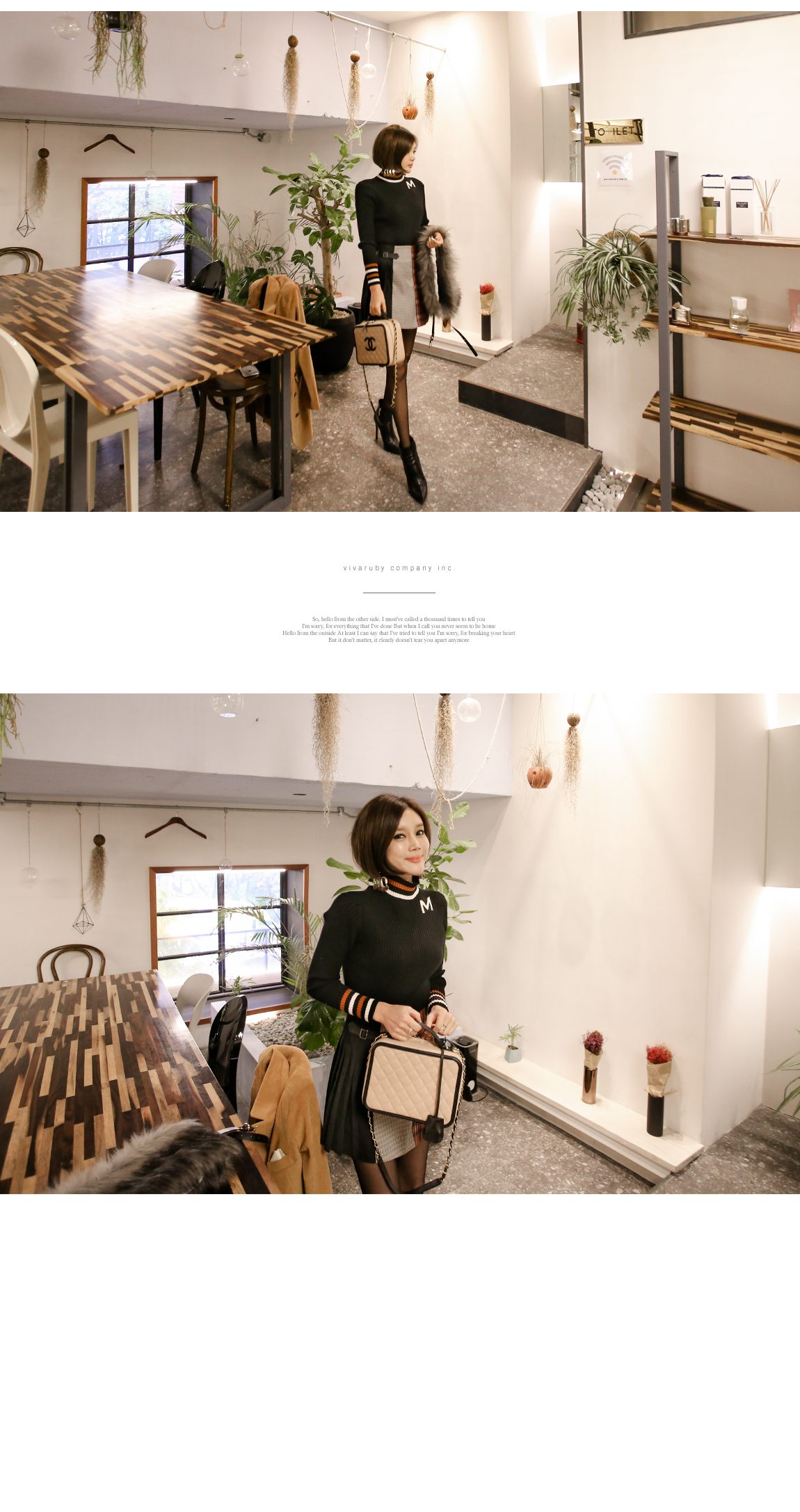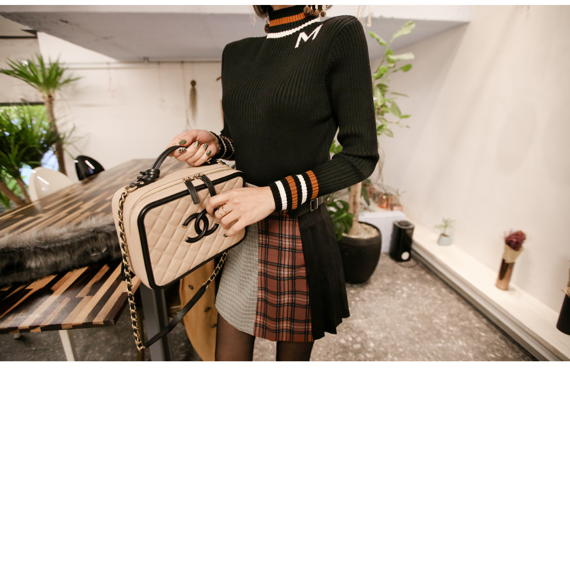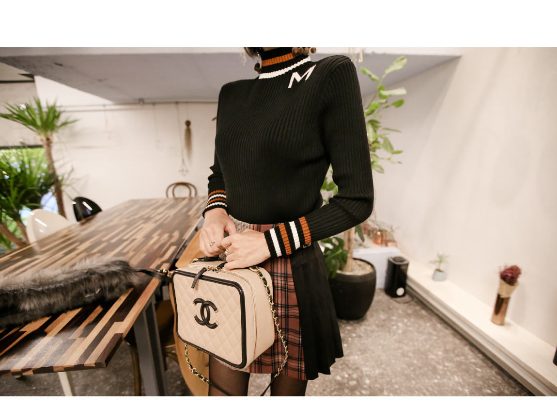 セミハイネックにネックラインがさらに長く見せ