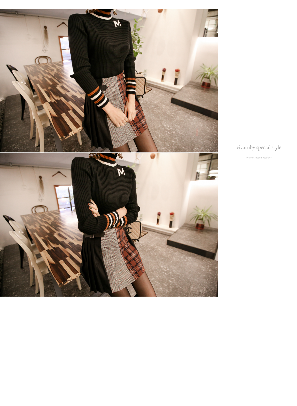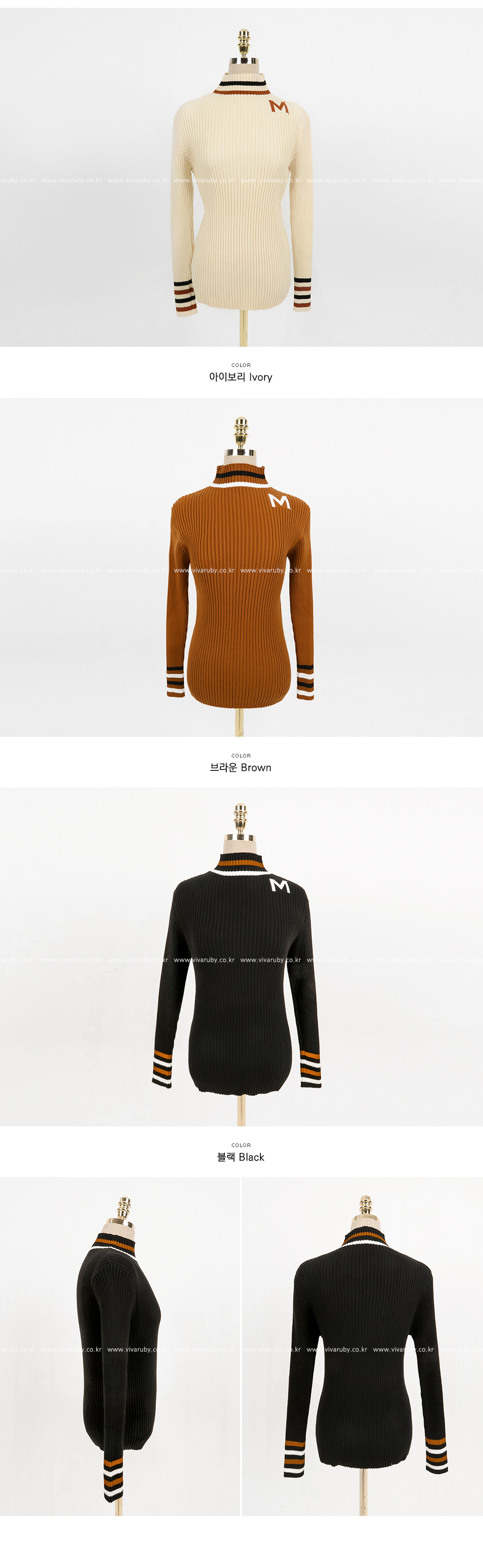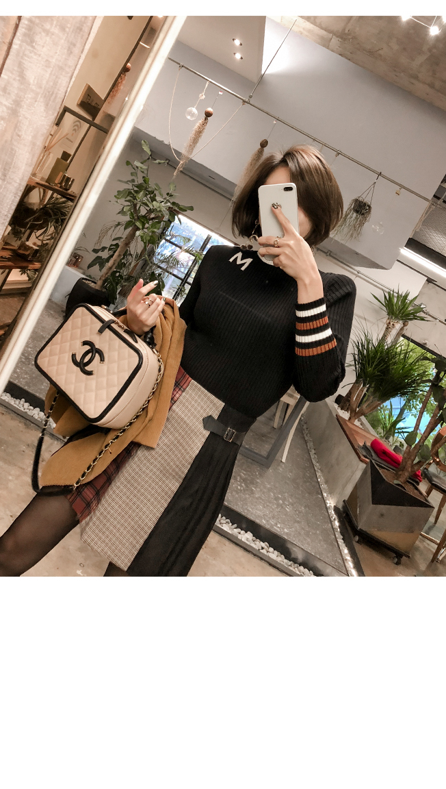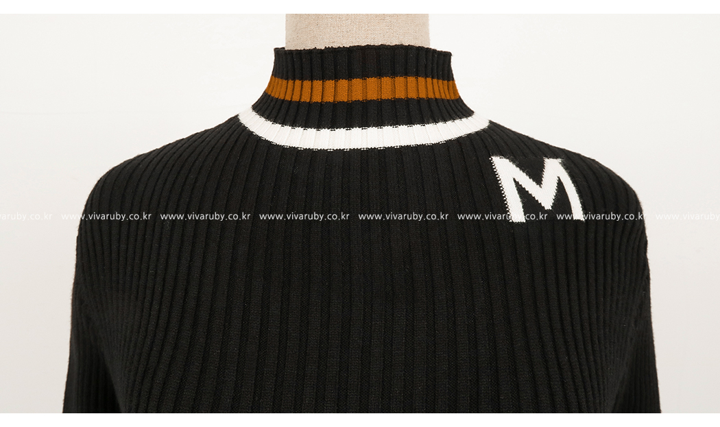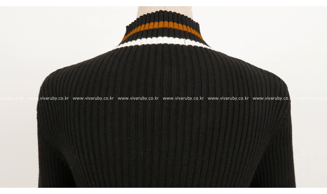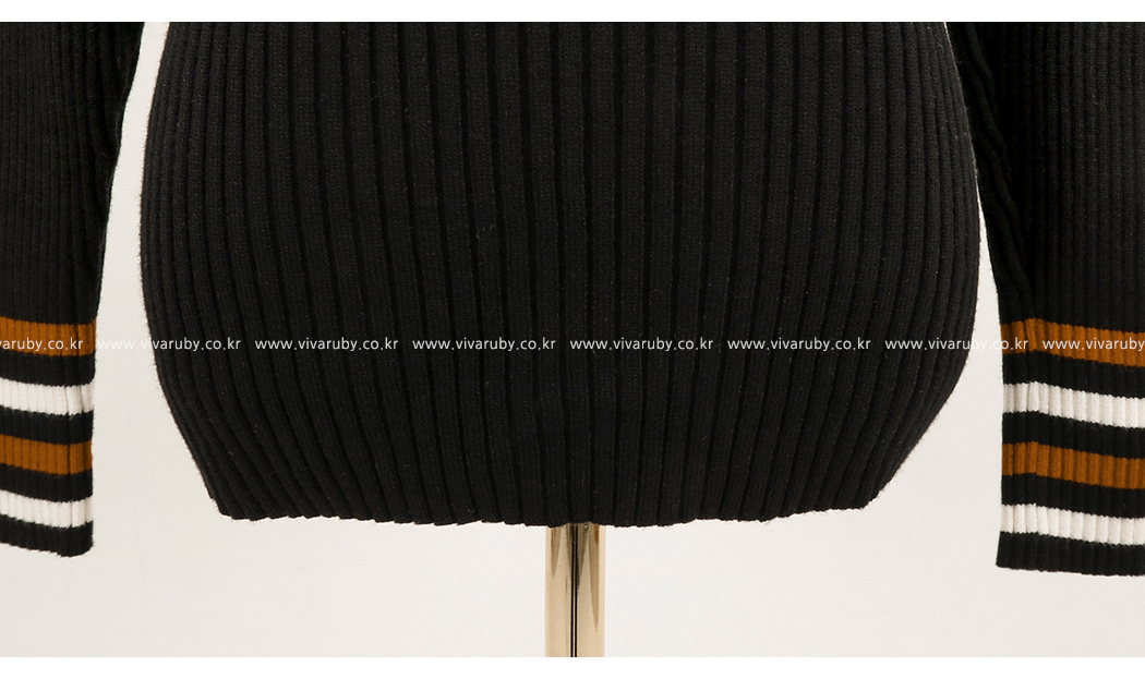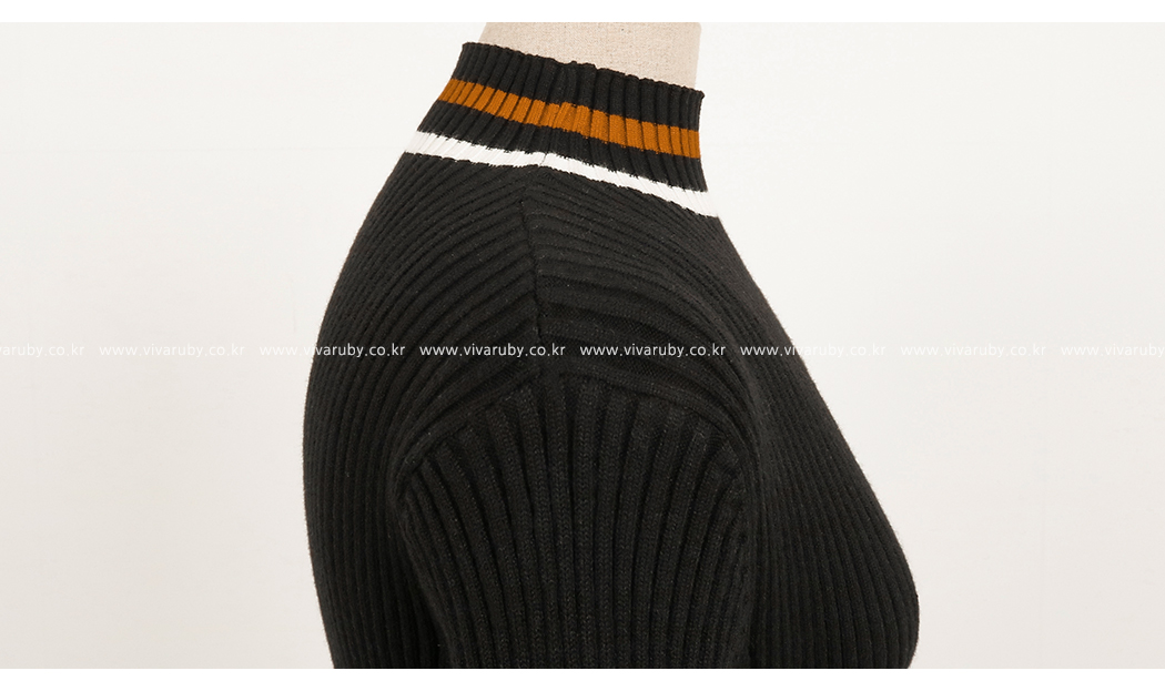 넥라인의 배색의 스트라이프로 포인트를 주었어요