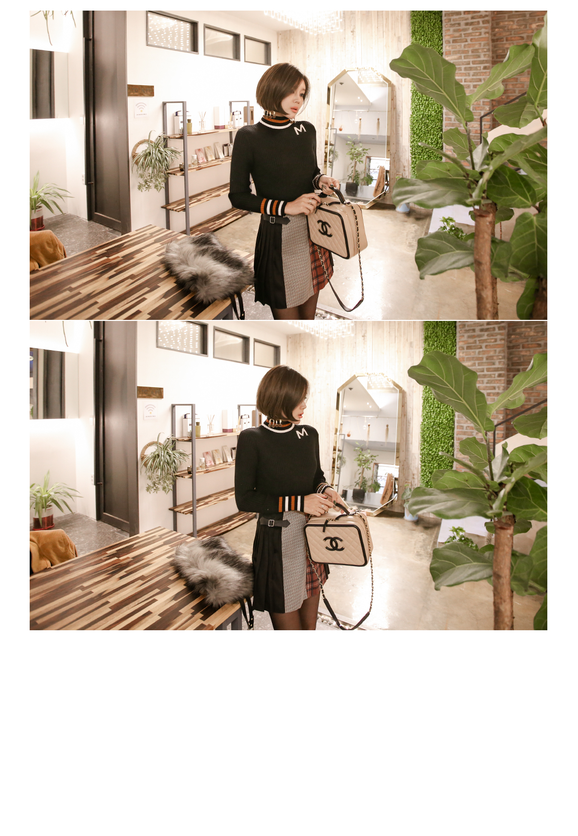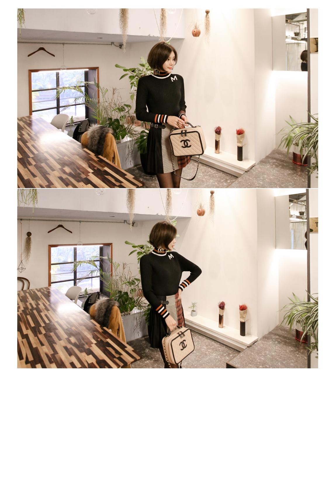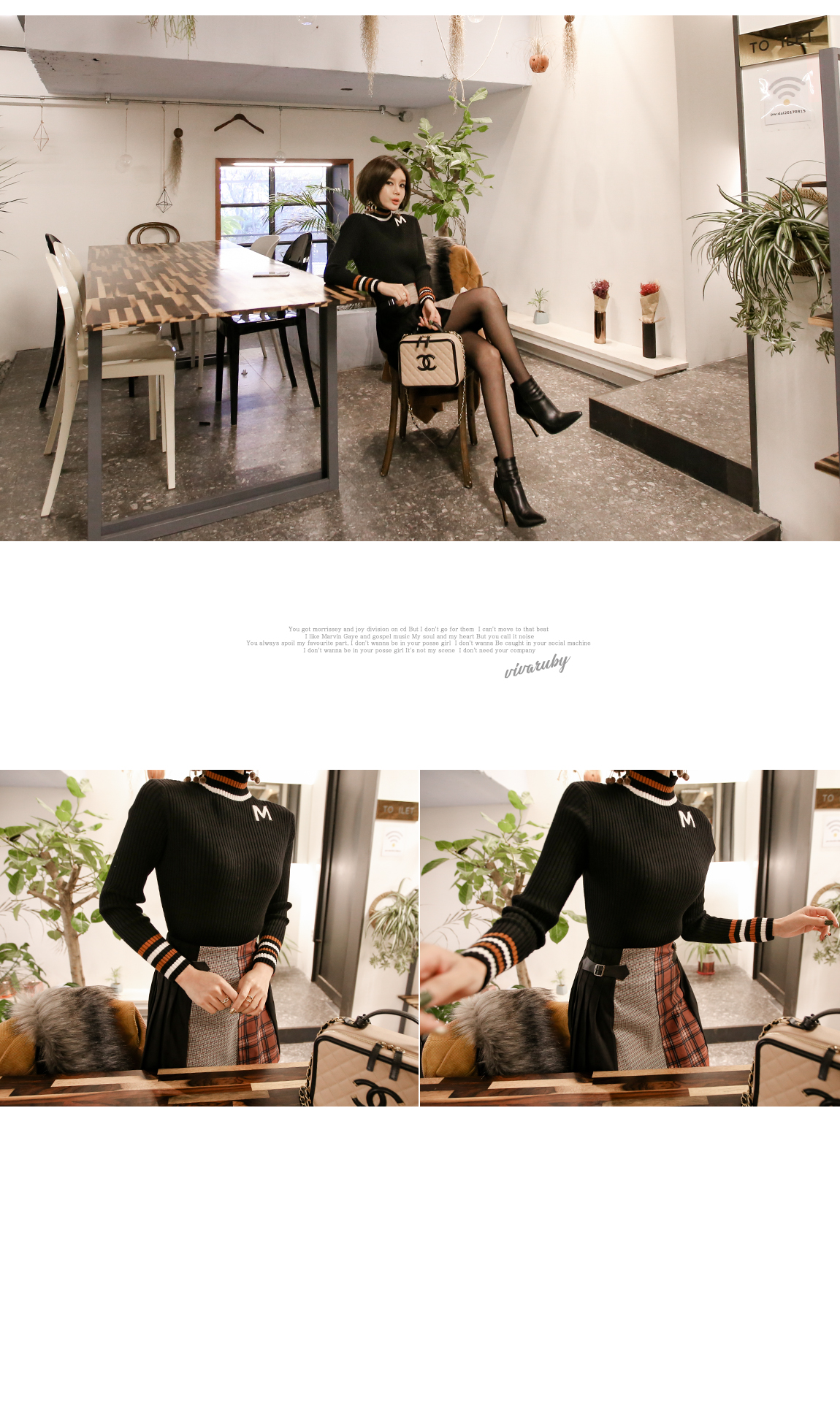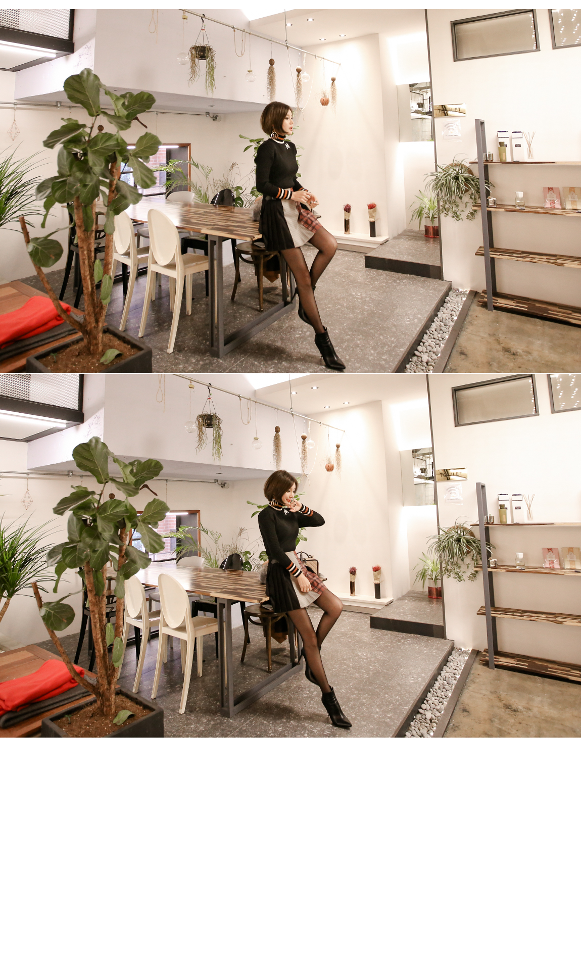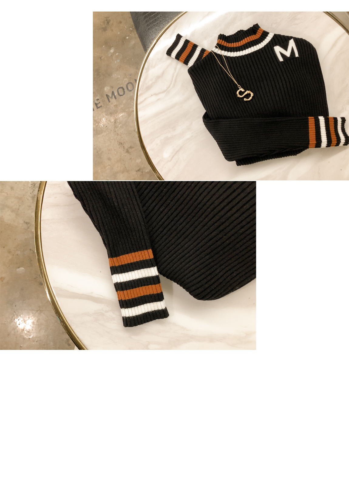 넥라인의 배색의 스트라이프로 포인트를 주었어요
