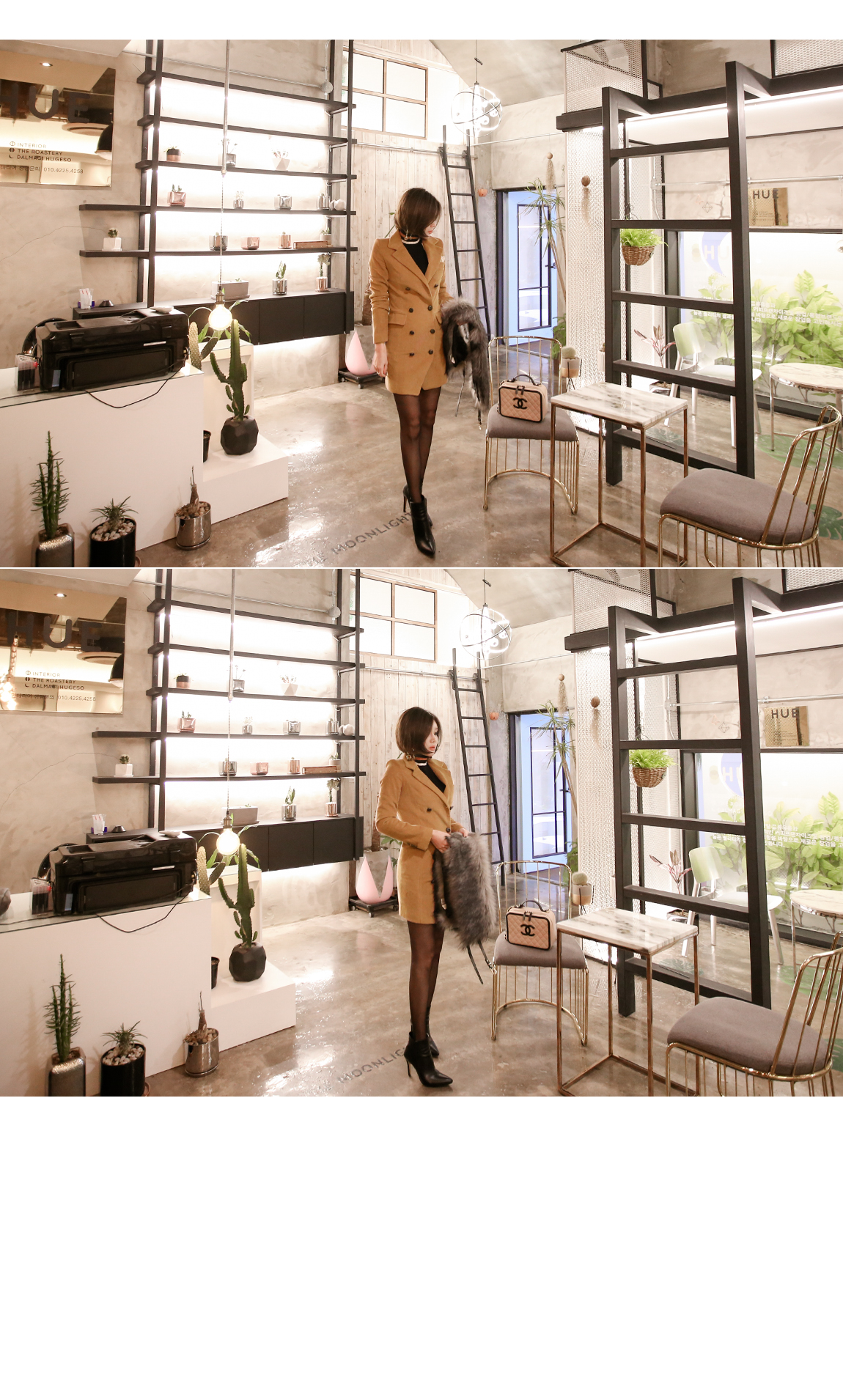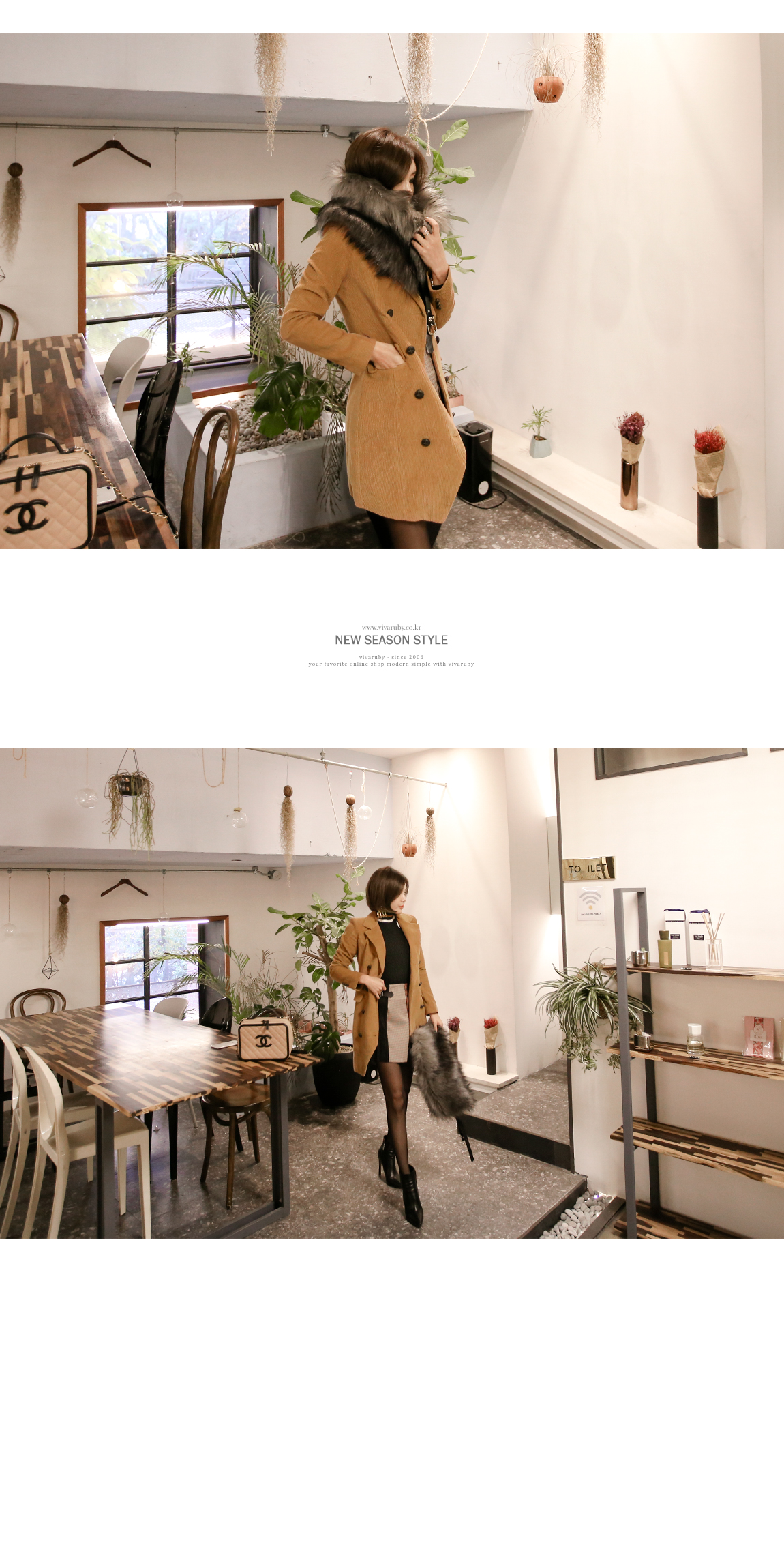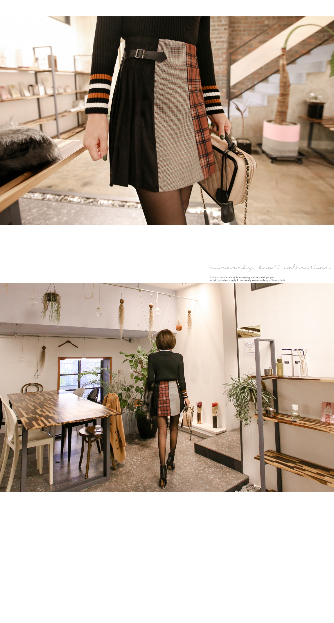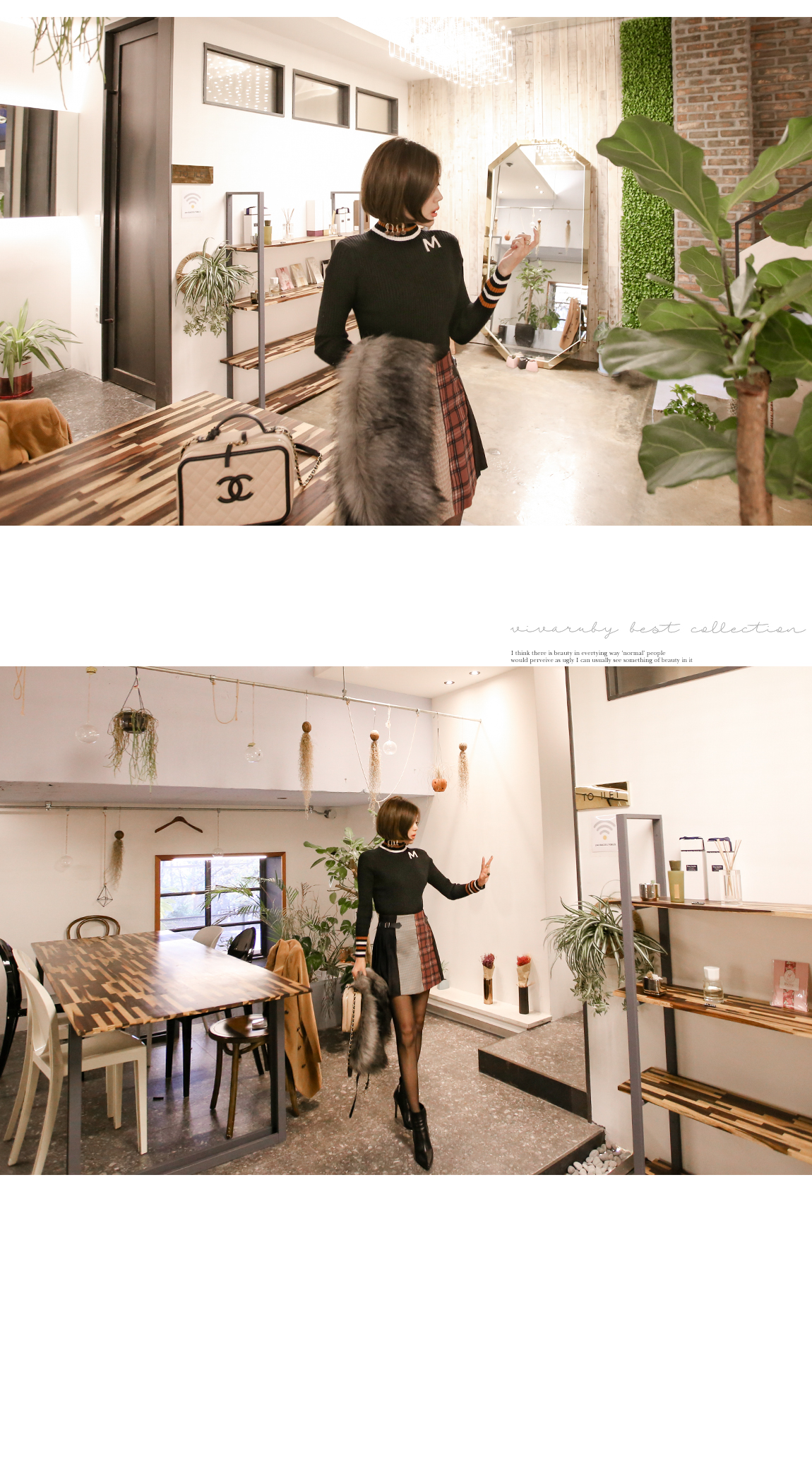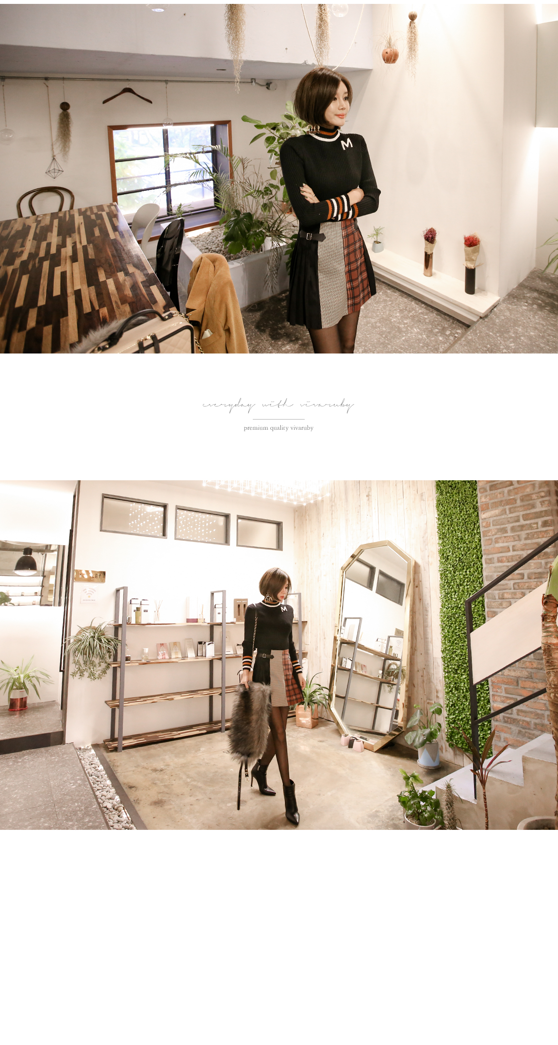 넥라인의 배색의 스트라이프로 포인트를 주었어요