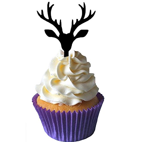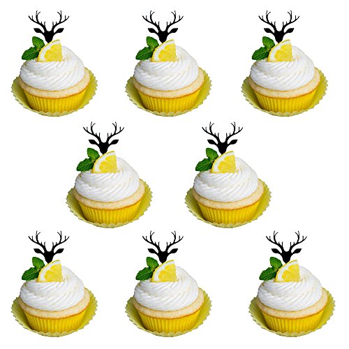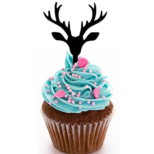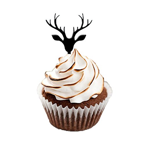 Ecape Acylic Cupcake Toppers with Reindeer Cupcake Picks of Merry Christmas Winter Decoration Pack of 8 Acylic Black