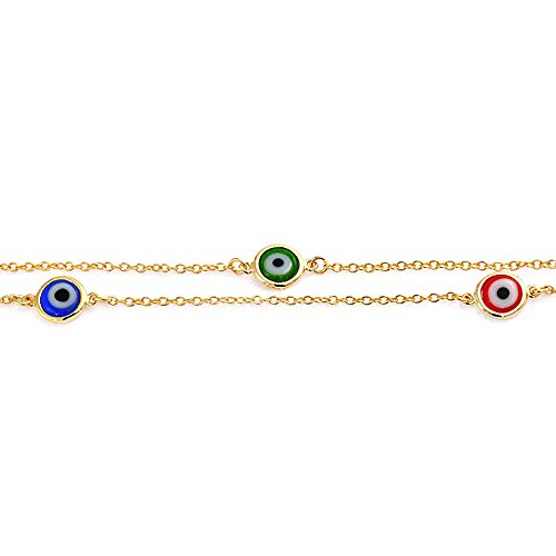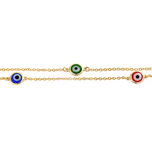 -. Title : Gold Plated Multicolor Evil Eye Anklet Sterling Silver 9in