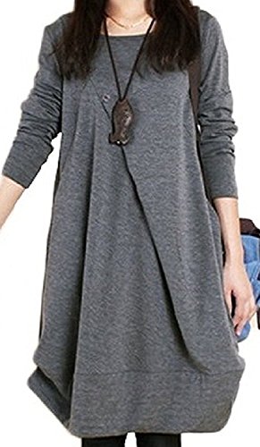 -. Feature : ふんわりとした清楚な女性らしいシルエットが特徴のシンプルワンピース。コットンとポリエステルの素材でさらっとした着心地です。カラーは、ブラック・グレー・グリーン・ブラウンの4色、サイズはM・L・XL・XXLまで取り揃えております。 / 胸元にあるさりげないボタンがちょっとしたお洒落を引き立たせてくれるワンポイントとなっており、aラインのゆったりしたシルエットがさりげなく体系カバーとなる嬉しいポイントとなってります。お腹まわりがゆったりしているので、妊婦さんのマタニティー服や産後にも楽にお使い頂けます。 / 一枚でサラッと着れるワンピースは、普段使い・通勤・オフィス・お出かけ・デート・ルームウエアにと使い方は様々。寒い時期にはタイツやレギンスと合わせたり、雨の日にはレインブーツとコーディネートすると、とても可愛らしいスタイルになります。 / サイズ:【M】着丈84cm胸囲89cm肩幅35cm 【L】着丈85cm胸囲93cm肩幅35cm 【XL】着丈86cm胸囲97cm肩幅36cm 【XXL】着丈87cm胸囲102cm肩幅38cm / ※商品画像と実際の色は、撮影の状況・モニターの表示等により若干異なる場合がございます。サイズにつきましても若干の誤差が生じる場合がございますのでご了承ください。