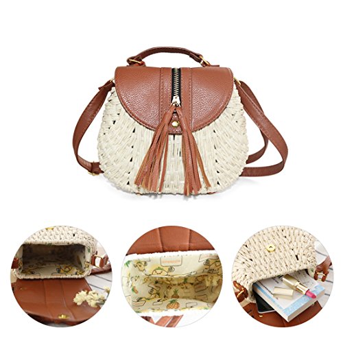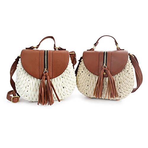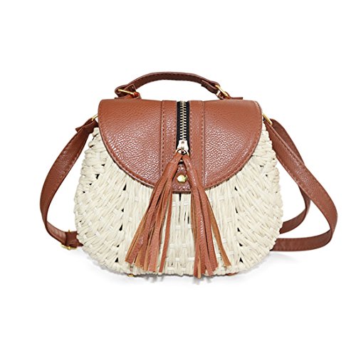 SUKUTU Womens Summer Hand-Woven Straw Beach Purse Bag With Tassel Crossbody Shoulder Bags Purses