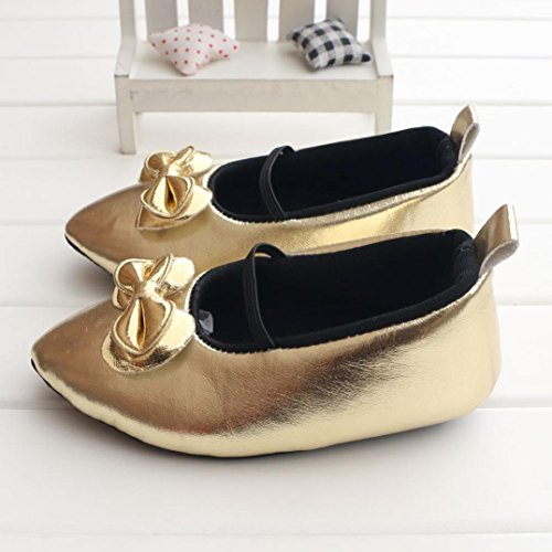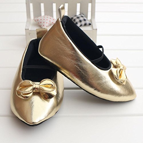 -. Feature : Material of shoe:PU Leather / Soft material makes baby feel very comfortable / Prefect for daily use and easy to take off or wear / Style:Crib Shoes / Color:Gold,Silver