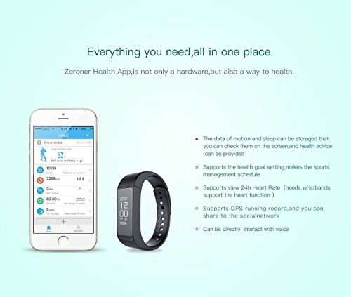 -. Feature : ✔ALMIGHTY FUNCTIONS: Step Counter, Call&Text Reminder, Incoming Calls Show, Calories&Sleep Tracking, Find Your Phone, Camera Remote Control, Sedentary Reminder, APP Message Reminder (Like Facebook, Twitter, etc). / ✔ACTIVITY TRACKER: See daily stats, time of day with a bright OLED display. Turn over hand to wake up screen check time or message. / ✔MONITOR FUNCTION: Download and install the app "Zeroner Health" from Google Play or Apple App Store. Basic sleep monitor can show your sleep state in the app. Also can be set alarm to remind of getting up, drinking or sedentariness. / ✔DETACHABLE USB CHARGING: Built-in USB Charging; Indicator Light; Light Weight; / ✔COMPATIBLE SYSTEM: App supports most smartphones or tablets with Bluetooth 4.0 or above. Support system: iOS 8.0 or above, Android 4.3 or above such as iPhone 7/7 Plus/6s/6/6 Plus/5S/SE, Samsung, Huawei, Sony, etc.