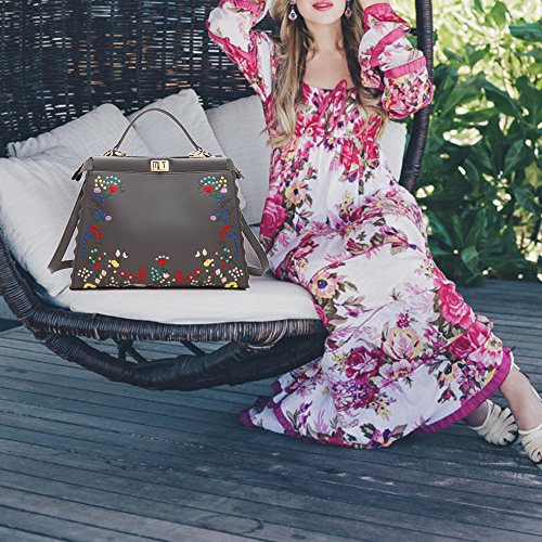 Women Floral Print Flower Satchel Handbag Leather Purse Shoulder Bag Turn Lock